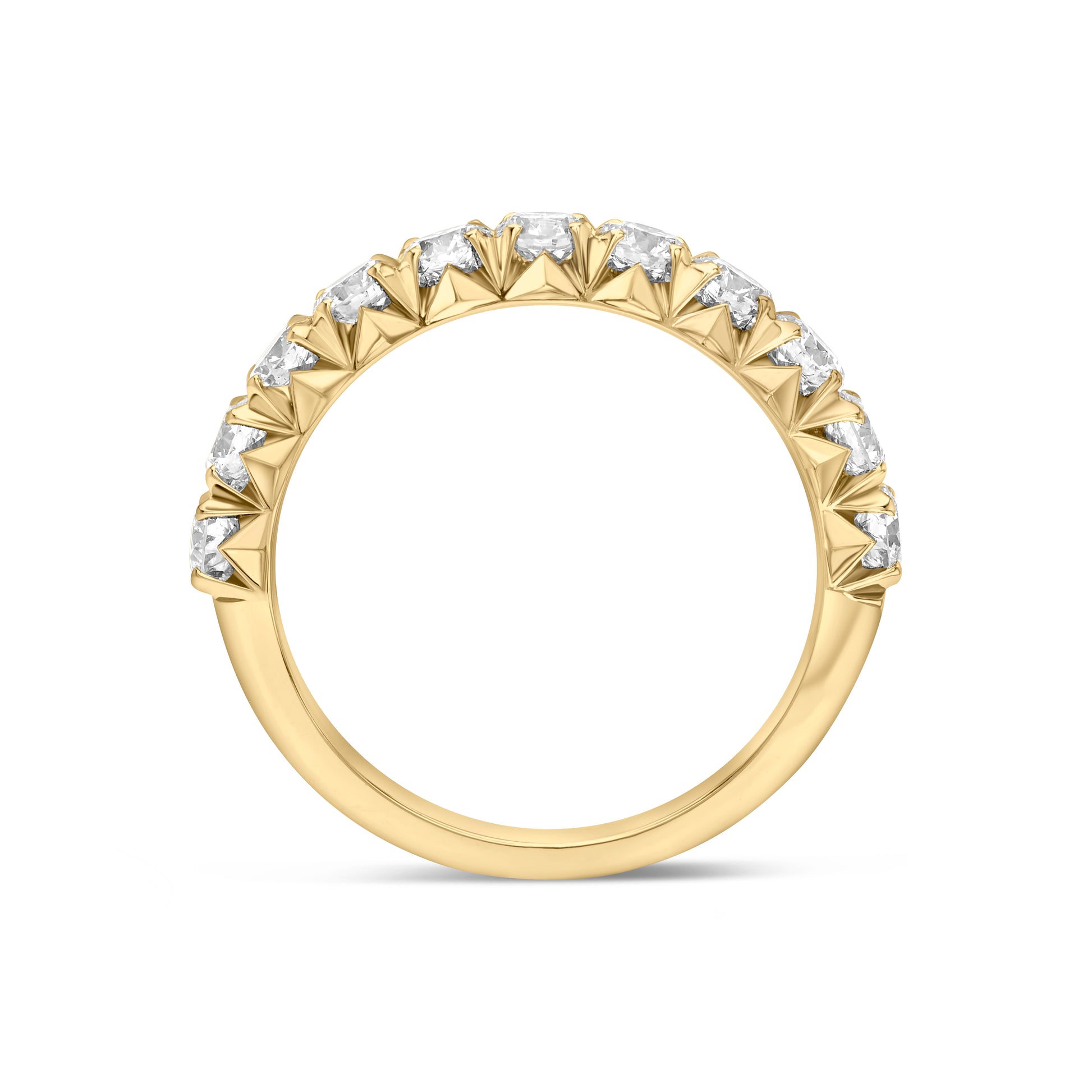 A sleek and timeless band crafted in 14K yellow gold, set with 11 brilliant lab-grown diamonds. Its refined sparkle makes it perfect as a wedding band, anniversary ring, or a versatile stacking piece.