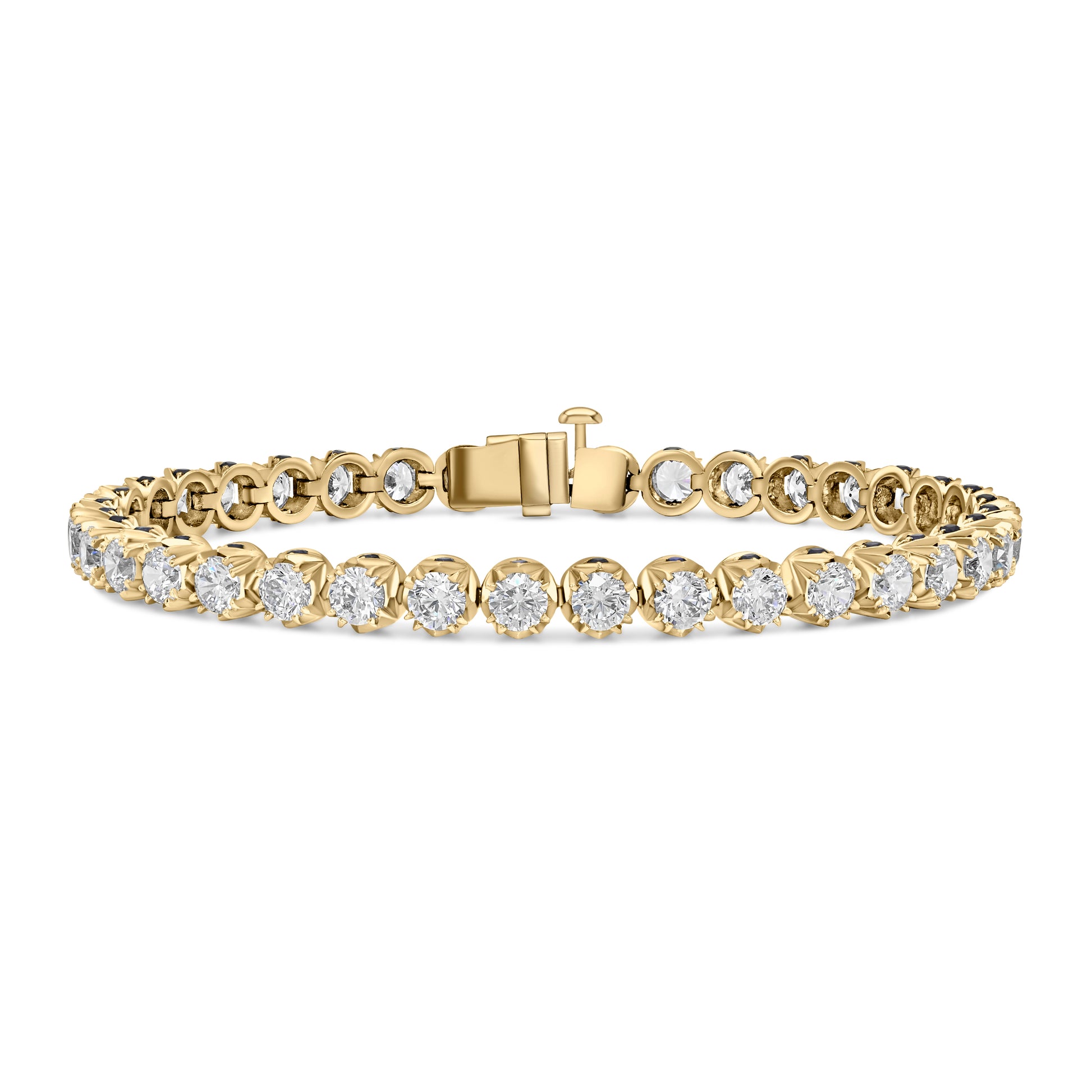 A striking bracelet that unites brilliance with elegance. Crafted in solid 18K gold, this design is set with sparkling lab-grown diamonds in a refined crown-inspired setting, radiating light with every movement. Accented by vivid sapphires, the bracelet embodies bold sophistication and versatility — perfect for layering, evening occasions, or as a timeless statement of luxury.